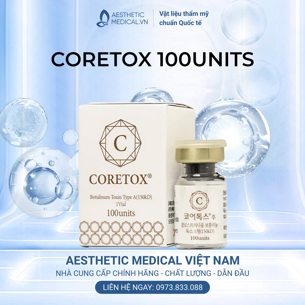 Coretox 100 units là sản phẩm Botulinum Toxin Type A cao cấp đến từ Hàn Quốc, được sản xuất bởi Medytox - thương hiệu dược phẩm thẩm mỹ hàng đầu với hơn 20 năm kinh nghiệm. Sản phẩm với công thức tinh khiết, độ an toàn cao, mang đến giải pháp hiệu quả trong việc xóa nhăn, trẻ hóa da, giúp bạn duy trì vẻ đẹp thanh xuân rạng rỡ.