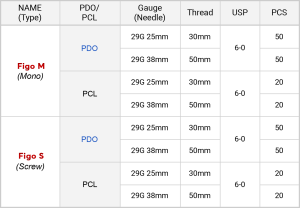 Chỉ FIGO S Screw là loại chỉ sinh học tự tiêu, có khả năng tương thích cao với cơ thể người. Chỉ có thiết kế dạng xoắn ốc 360 độ, khi được cấy vào da sẽ tạo ra hiệu ứng "xoắn ốc trẻ hóa", kích thích sản sinh collagen, elastin, từ đó cải thiện độ đàn hồi, săn chắc, làm mờ nếp nhăn, trẻ hóa da toàn diện.
