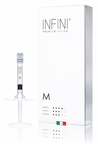 INFINI PREMIUM FILLER L+ LIDOCAINE là một loại gel làm đầy dựa trên axit hyaluronic có liên kết chéo cao. Mục đích chính của nó là phục hồi hoặc tăng thể tích các mô mềm và điều chỉnh các nếp nhăn sâu và nếp nhăn trên da. Thành phần chính là axit hyaluronic với nồng độ cao và kích thước hạt lớn (600 μm), đảm bảo tái tạo lại thể tích và đặc tính thể tích bị mất