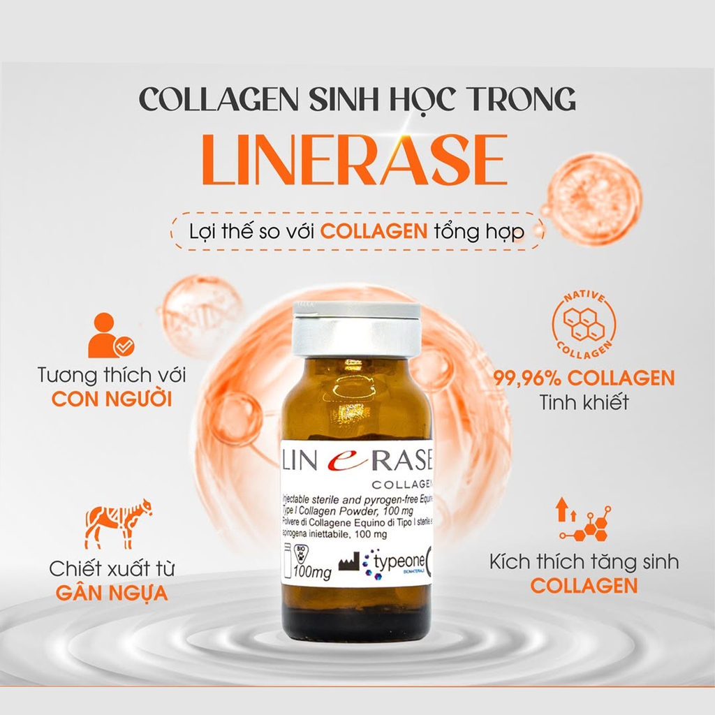 Linerase Collagen là một thiết bị y tế dạng tiêm, vô trùng, có độ tinh khiết cao, được thiết kế chuyên biệt cho liệu pháp tái tạo sinh học (biorevitalization) da. Sản phẩm chứa Collagen Dị chủng Type I (HTIC), được chiết xuất từ mô gân ngựa (equine tissue), một nguồn collagen có cấu trúc tương thích cao với collagen tự nhiên của cơ thể người.