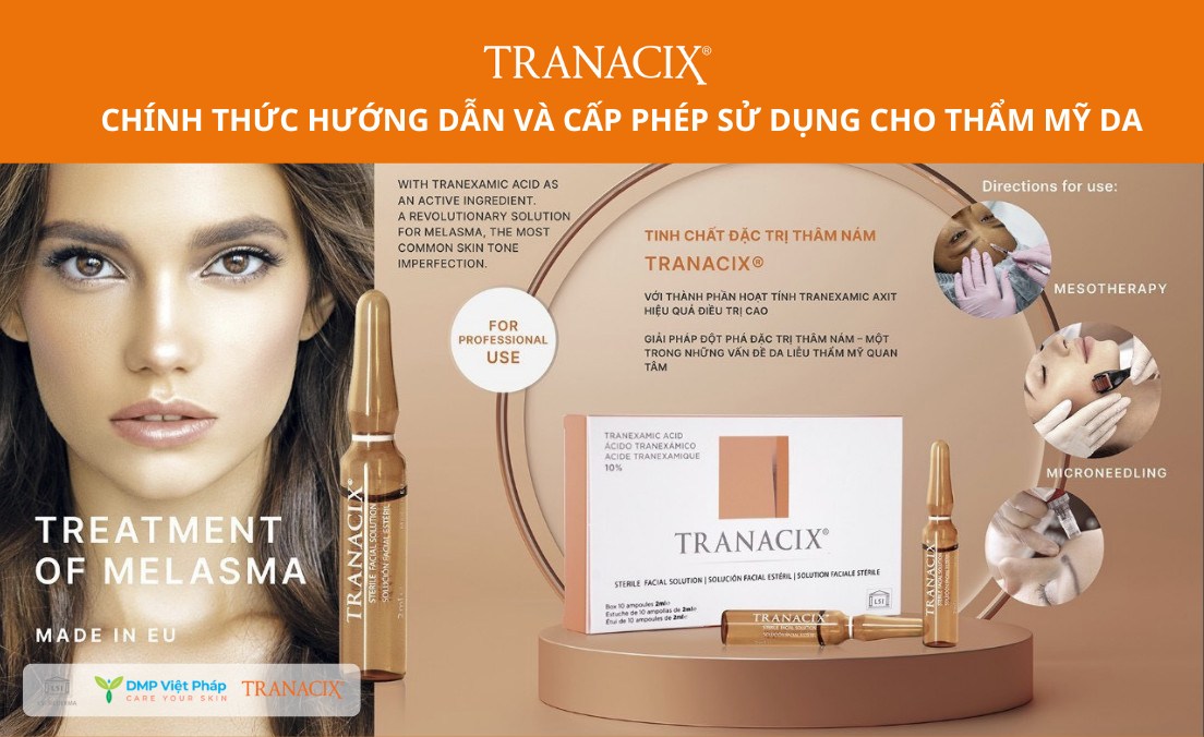 • Tinh chất Tranacix chuyên dụng trong Thẩm mỹ da được cấp phép bởi Bộ Y Tế.